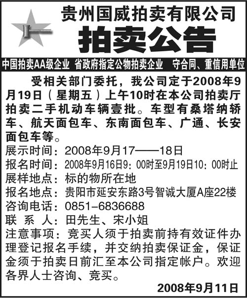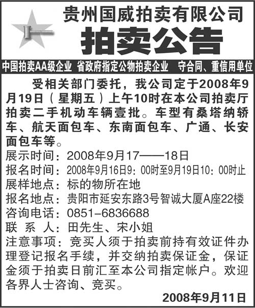 版權(quán)所有 ? 2020 貴州國(guó)威拍賣有限公司 保留所有權(quán)利 技術(shù)支持:興思匯科技 Powered by www.gzgwpm_com.gx6999.com